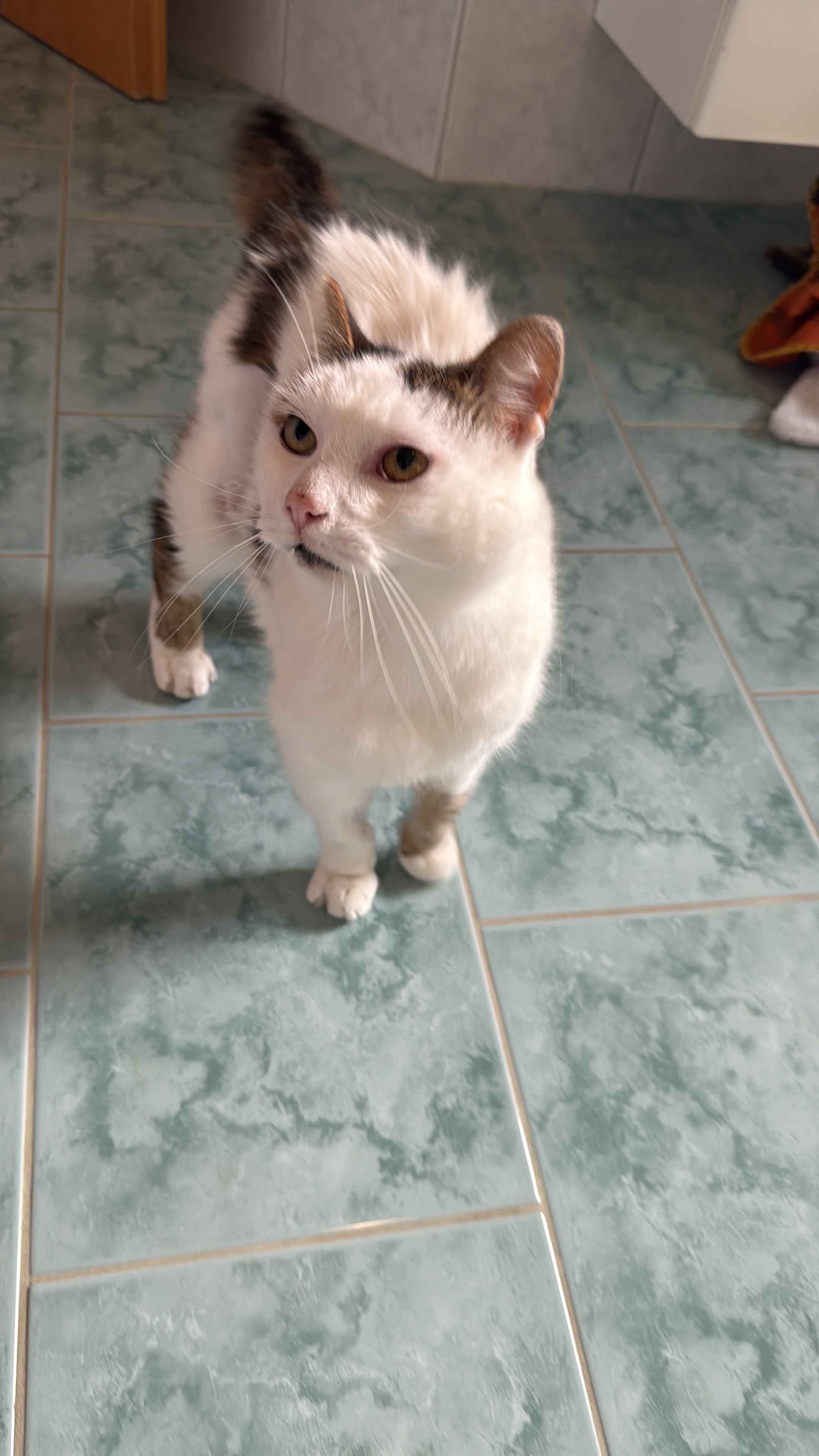 Hatt einen Knick im Schwanz und ist einseitig Blind