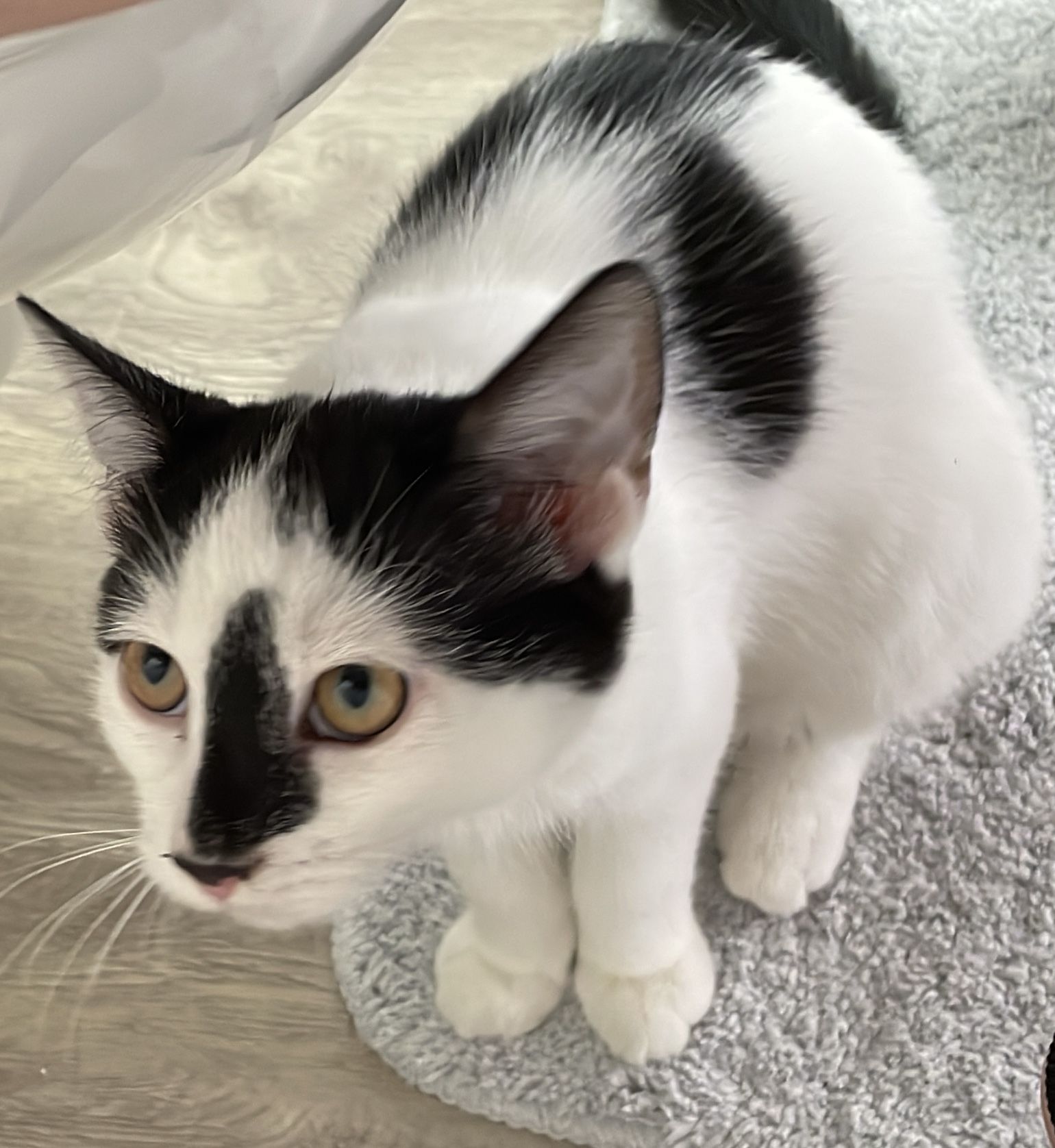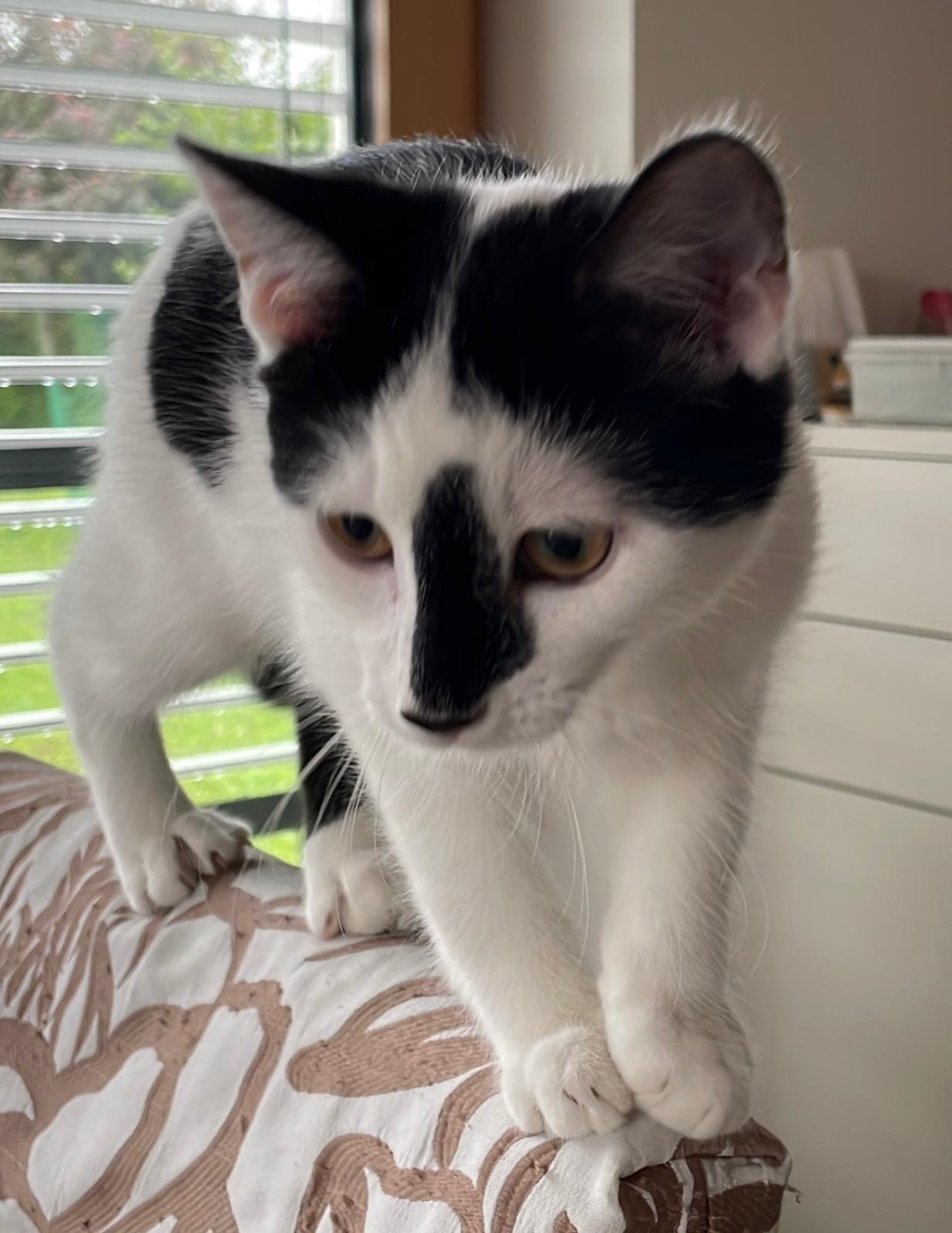 Besondere Hinweise Hat einen schwarzen „Pinselstrich“ auf seiner Nase.