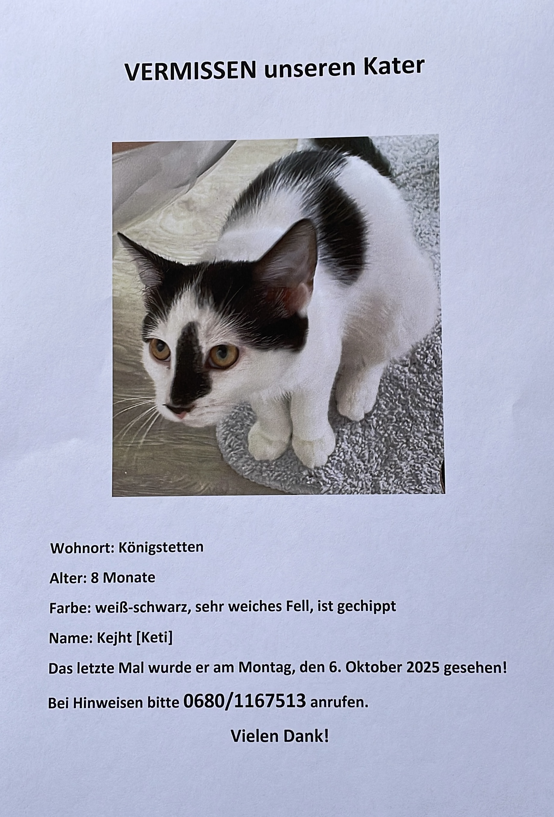 Vermisst seit/Gefunden am 2025-10-06