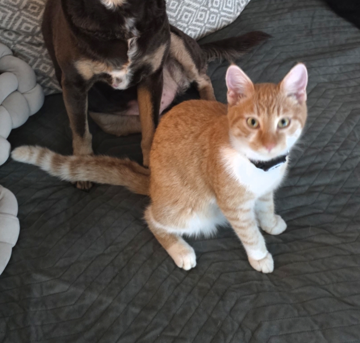 Besondere Hinweise Schwarzes Halsband mit Airtag, neugierig aber auch verschreckt