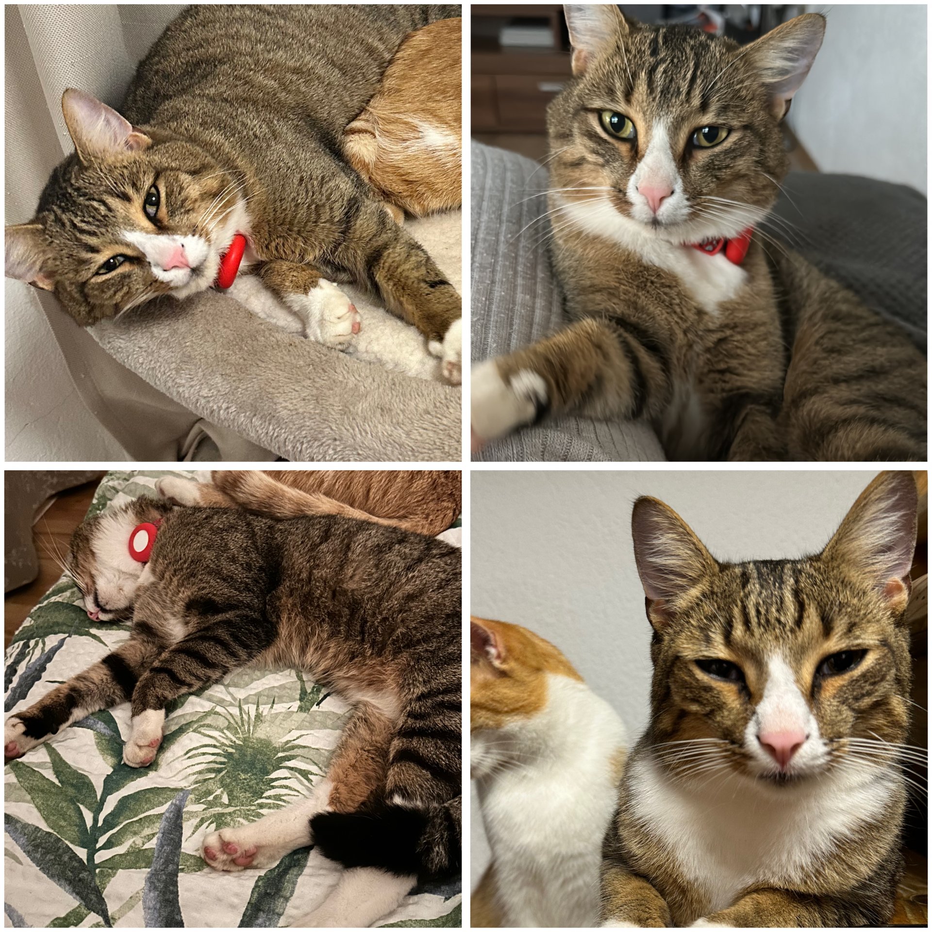 Besitzt ein rotes Halsband mit AirTag