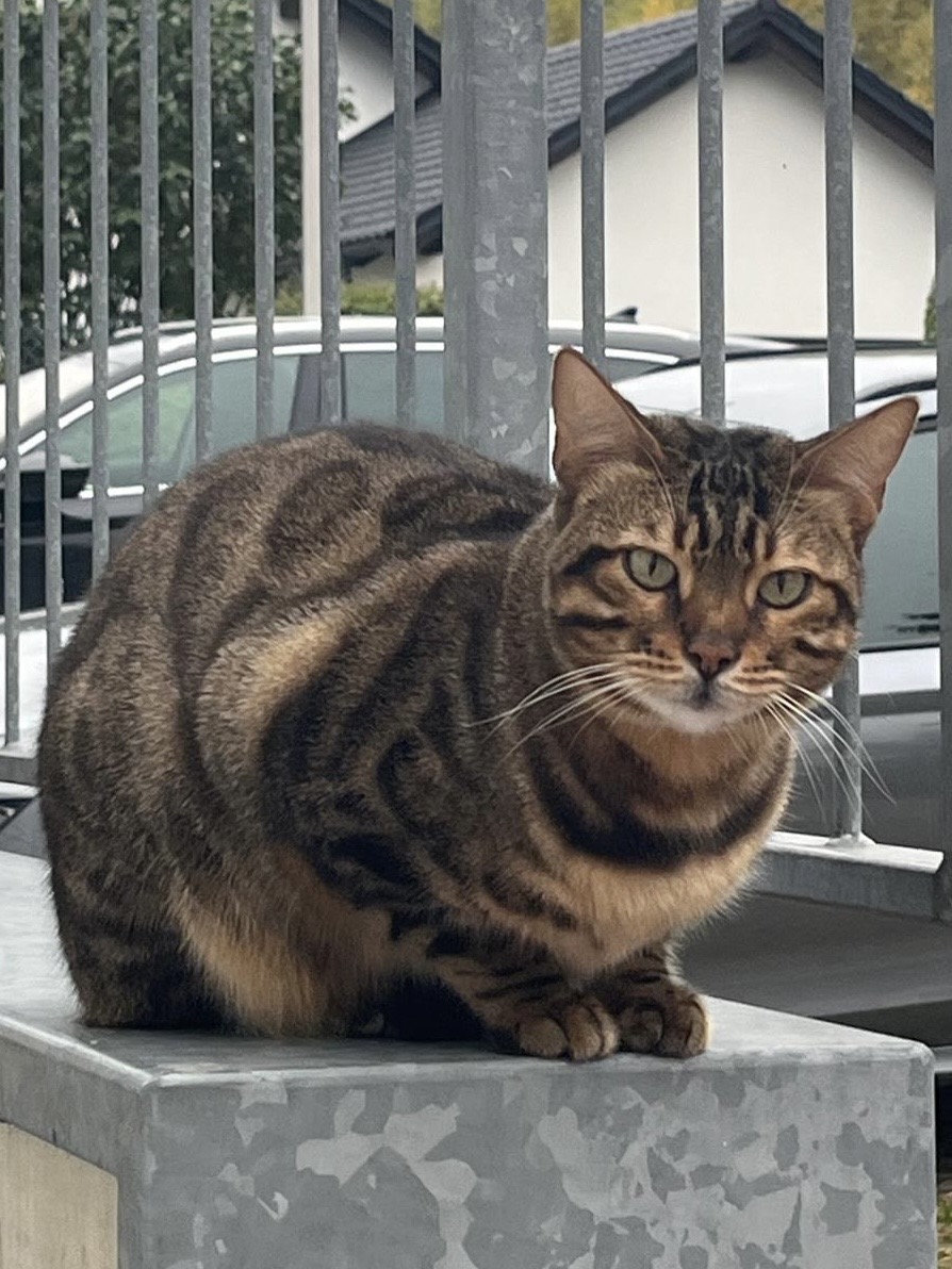 Besondere Hinweise Grüne Augen, braune Nase. Zutraulich, lautes Miauen. Katze macht sich bemerkbar.