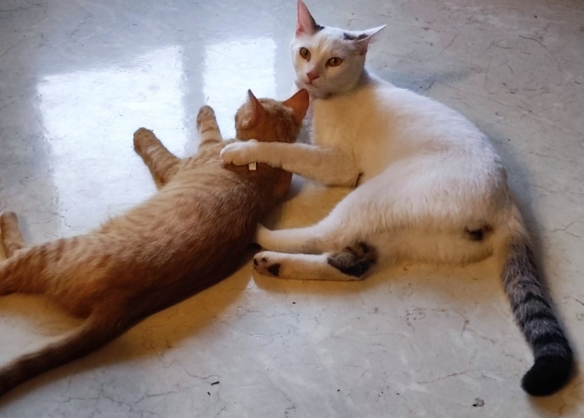 Besondere Hinweise Weiß, getigerter Schwanz, bei fremden scheu